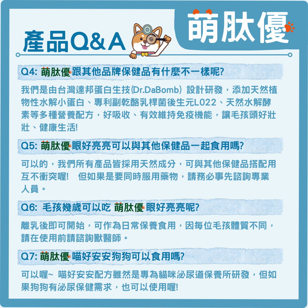 A4:可以的!雖然名稱叫「喵好安安」,但這款配方同樣適合狗狗使用。對於有頻尿、尿道敏感或需要狗狗泌尿道保健的毛孩,都能透過本產品得到支持。