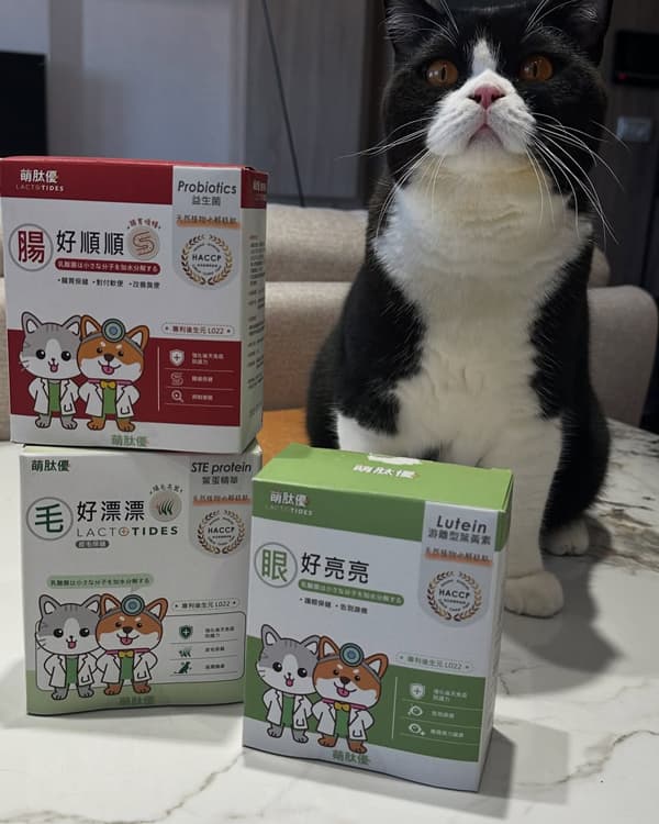 杯麵與米茶從 11 月底開始試吃萌肽優 腸好順順、毛好漂漂、眼好亮亮的貓咪保健食品。
