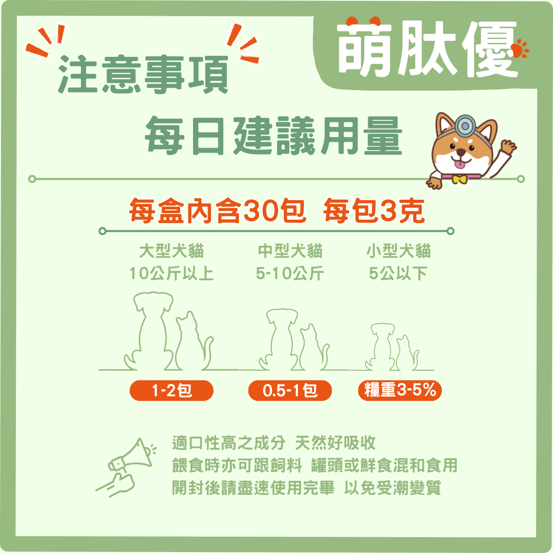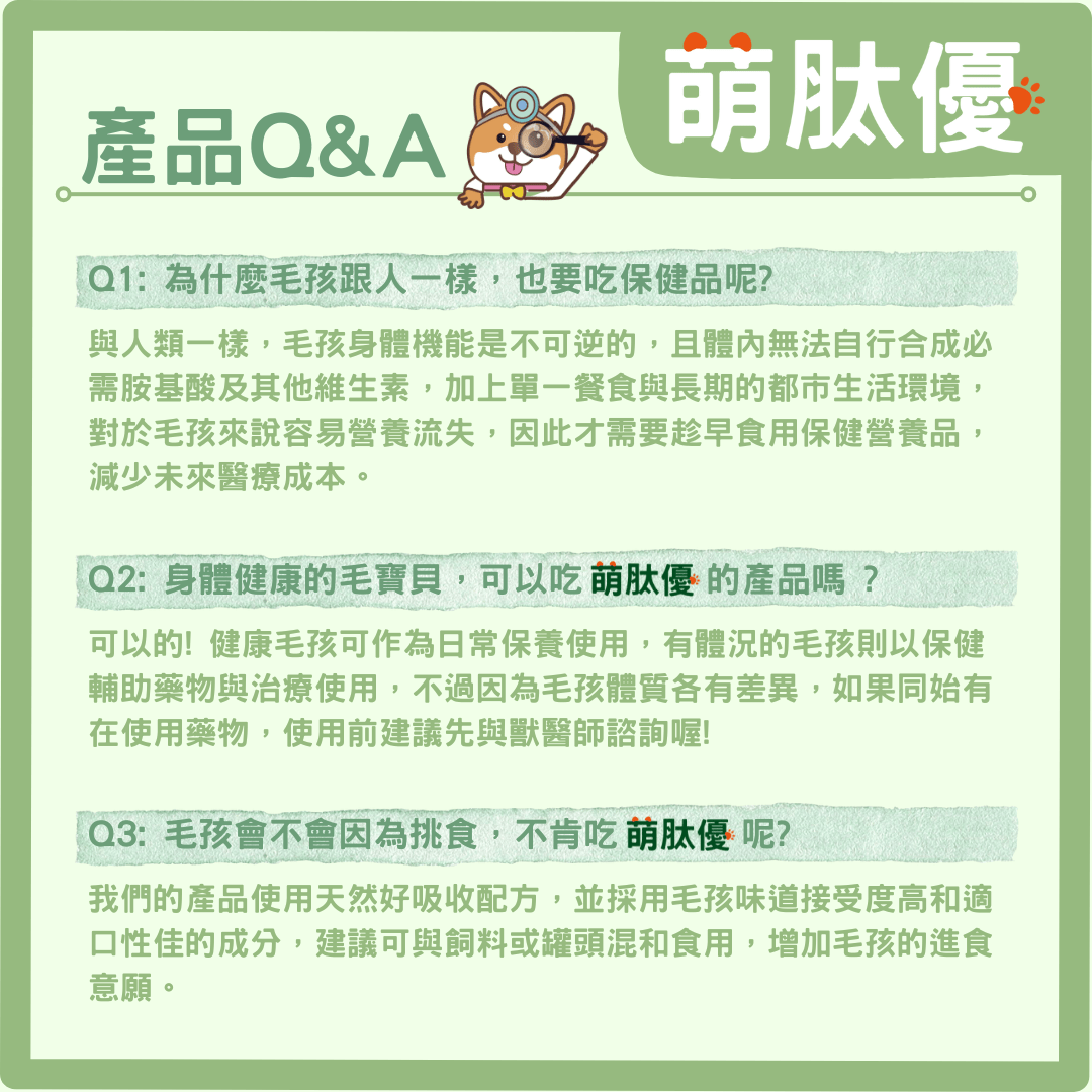 A3:不用擔心!眼好亮亮護眼營養粉採用天然好吸收配方,嗜口性佳,可直接拌入飼料或罐頭,毛孩幾乎都能接受,就算是挑嘴貓咪或狗狗,也能安心補充護眼營養。