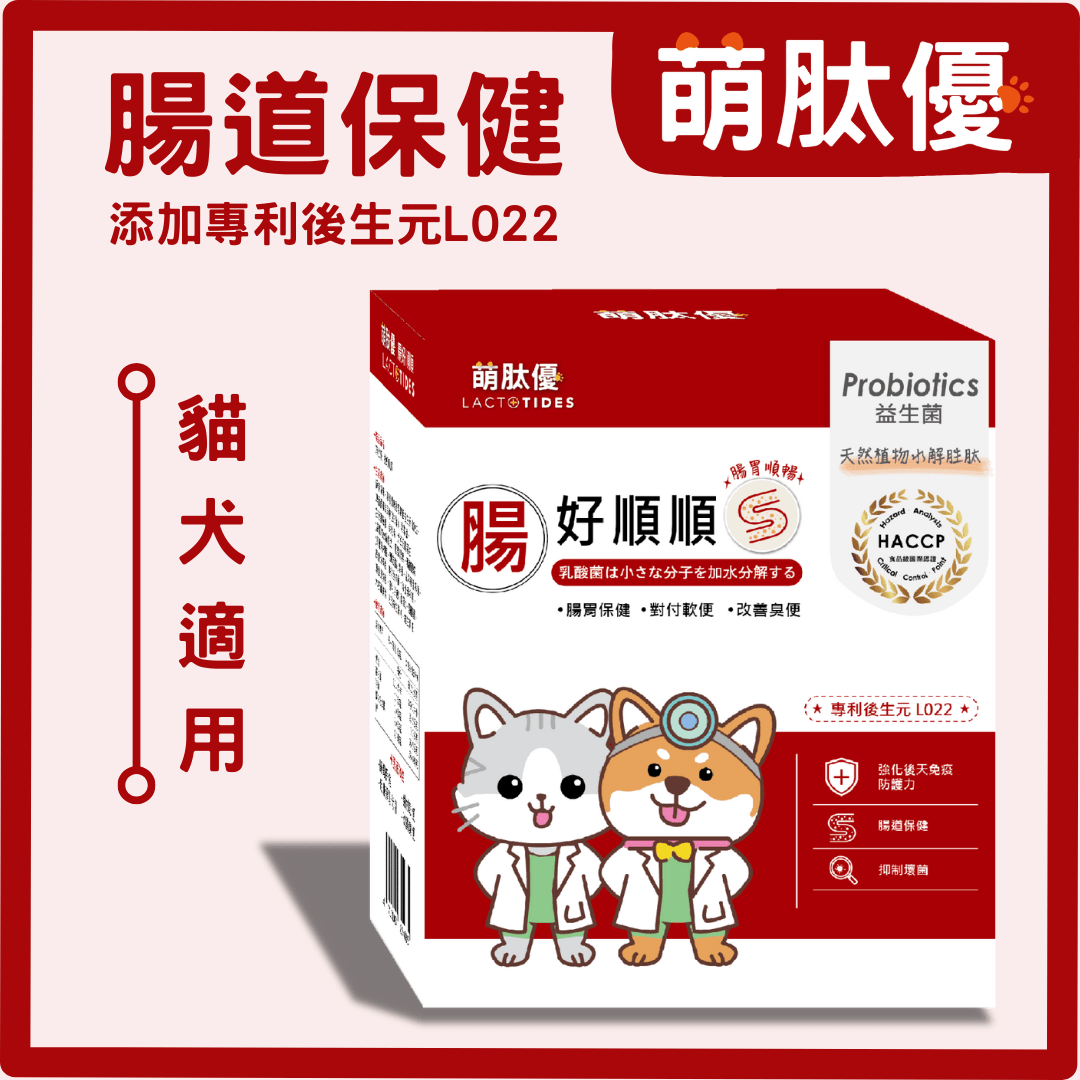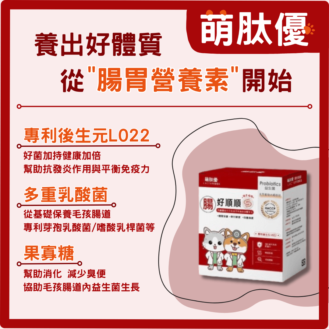 腸好順順透過專利後生元搭配多重乳酸菌與益生元,協助毛孩建立穩定腸道菌叢,幫助消化吸收,讓毛孩便便更順暢、氣味更清爽。